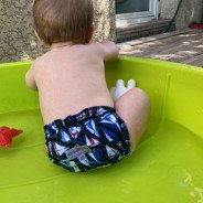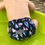 Contrairement aux maillots couches jetables, le maillot-couche taille unique lavable Applecheeks ne laisse pas passer les selles dans les piscines.