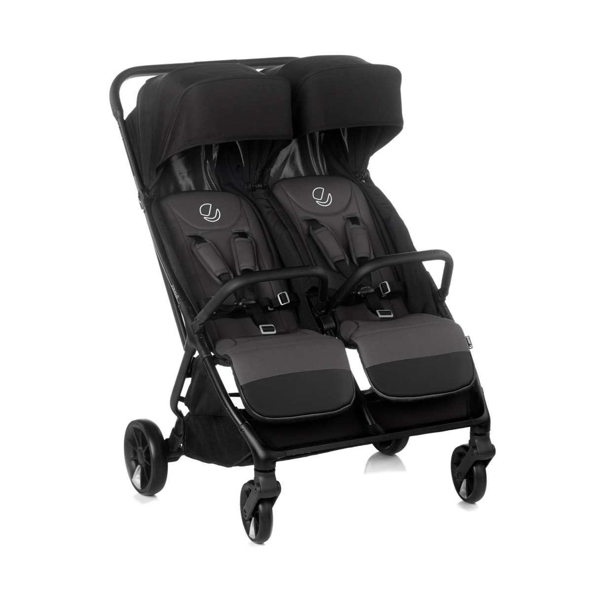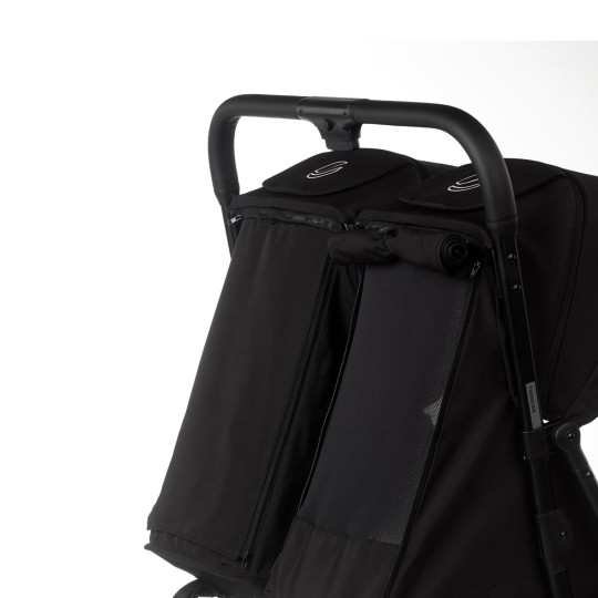 Chaque enfant bénéficie d’un dossier indépendant et multipositions, offrant un confort personnalisé pour les temps de repos comme pour les promenades actives. Les repose-pieds réglables indépendamment s’adaptent à la morphologie et à l’âge de chaque bébé, garantissant une position ergonomique optimale.