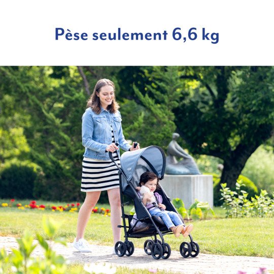 Avec son poids de seulement 6,6 kg, cette poussette légère se replie rapidement et de manière compacte pour vous permettre d'aller où vous le souhaitez sans effort supplémentaire.